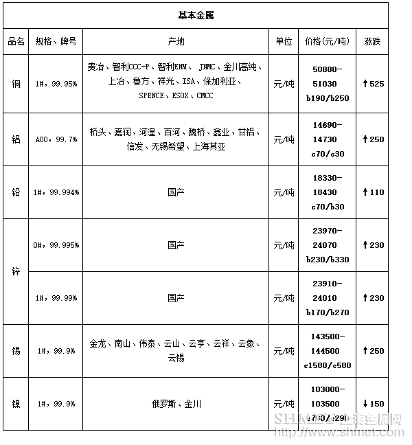 三個月期銅 CMCU3 收低0.5%,報每噸6,877美元;期鎳 CMNI3 跌0.8%,報每噸14,215美元;期鋅 CMZN3 漲0.6%,報3,154美元;期鉛 CMPB3 跌0.8%,報2,350美元;期錫 CMSN3 大漲2.1%,報每噸21,475美元。