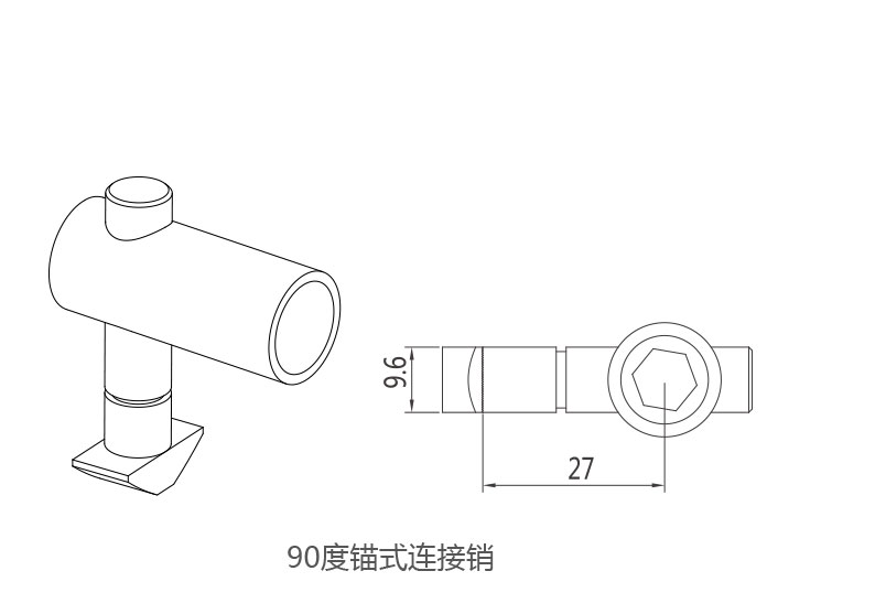 用于兩根鋁型材90度的直角連接。安裝時(shí),它隱藏在型材內(nèi)部,請(qǐng)根據(jù)實(shí)物加工孔位。