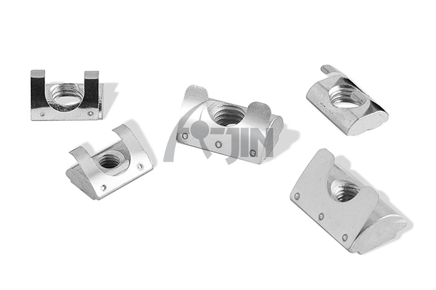 彈片螺母塊能被直接塞進(jìn)鋁型材槽坑中的任意裝配點(diǎn),他背部的彈片能撐起并固定它的位置,使安裝十分簡(jiǎn)單且可靠,它是型材連接中使用較多的配件之一。