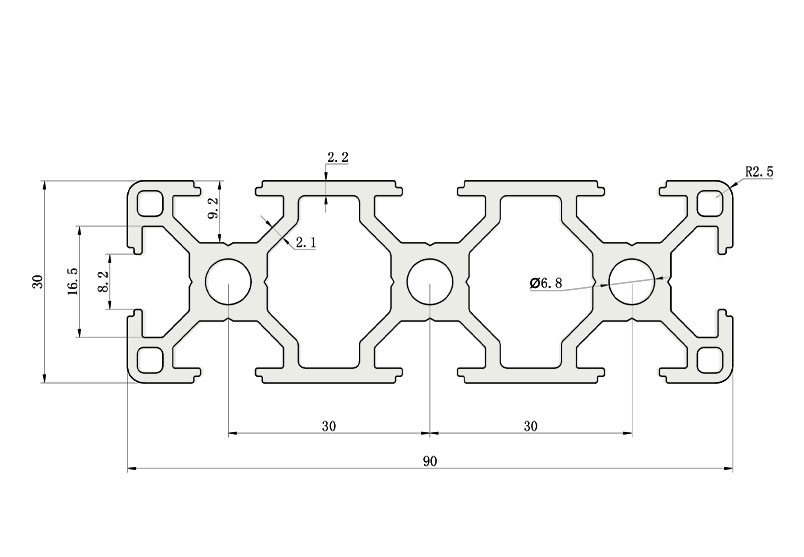 適用于應力及強度較大的框架組合結構,它的外型采用圓角過渡,表面經過陽極氧化處理,高雅美觀并抗腐蝕,它通常采用M8X20高強度專用螺栓加彈性扣件的內部連接方式,堅固而又可靠,是工業框架應用較為廣泛的型材之一。