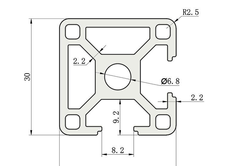 適用于應力及強度較大的框架組合結構,它的外型采用圓角過渡,表面經過陽極氧化處理,高雅美觀并抗腐蝕,它通常采用M8X20高強度專用螺栓加彈性扣件的內部連接方式,堅固而又可靠,是工業框架應用較為廣泛的型材之一。