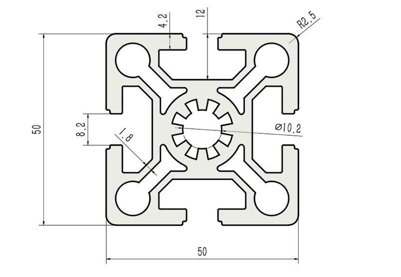 適用于應(yīng)力及強(qiáng)度較大的框架組合結(jié)構(gòu),它的外型采用圓角過(guò)渡,表面經(jīng)過(guò)陽(yáng)極氧化處理,高雅美觀并抗腐蝕,它通常采用M12X30高強(qiáng)度專(zhuān)用螺栓加彈性扣件的內(nèi)部連接方式,堅(jiān)固而又可靠,是工業(yè)框架應(yīng)用較為廣泛的型材之一。